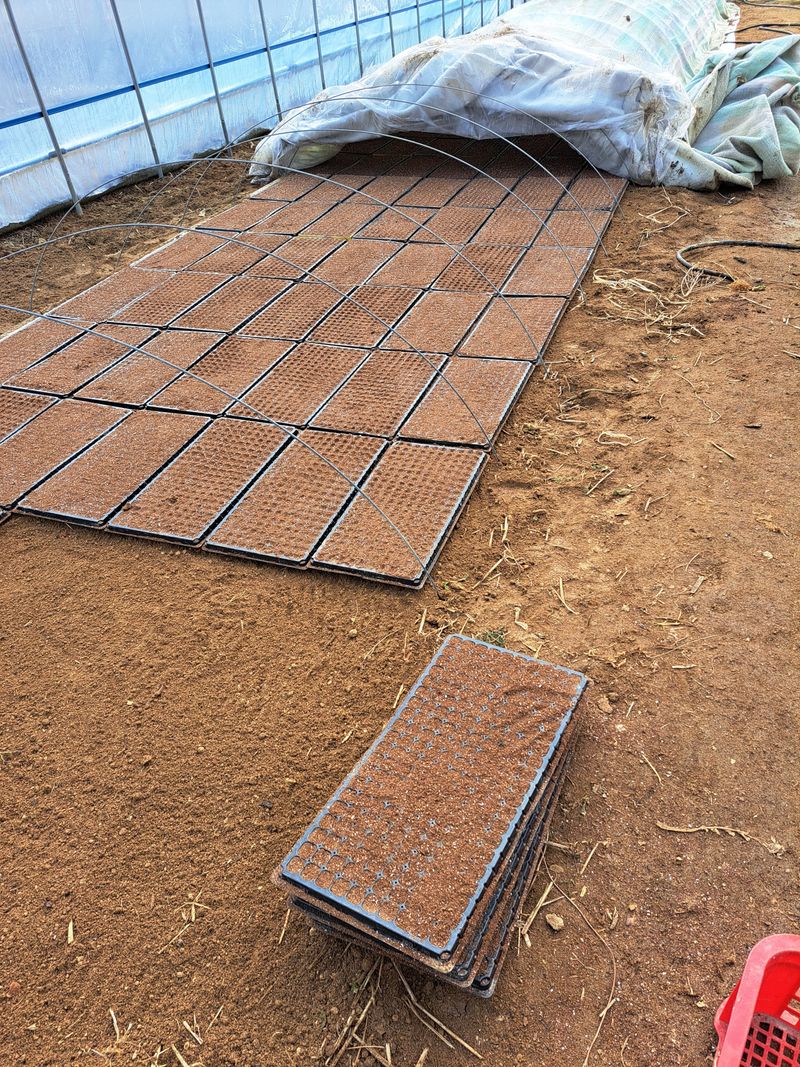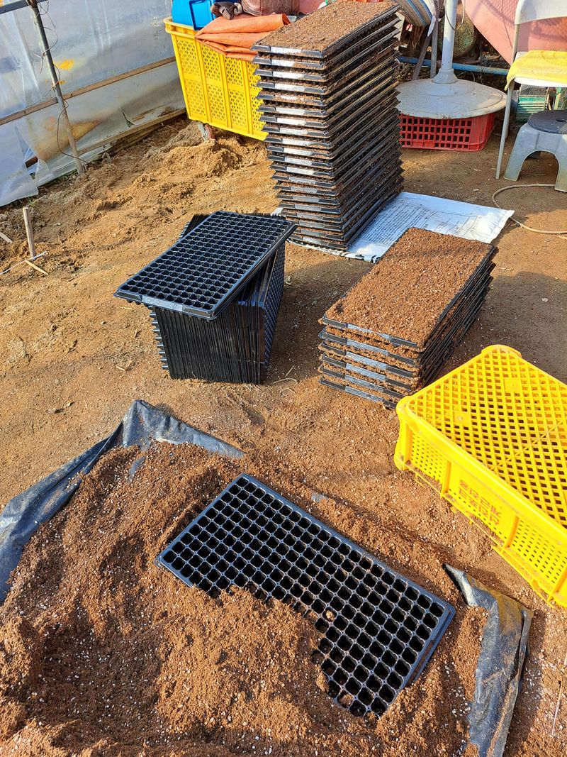 정비한 하우스에 올 농사 대파씨앗 파종했어요 씨앗값이 꽤나 비싸네요 2일에 걸처 280판 작업 끝났어요