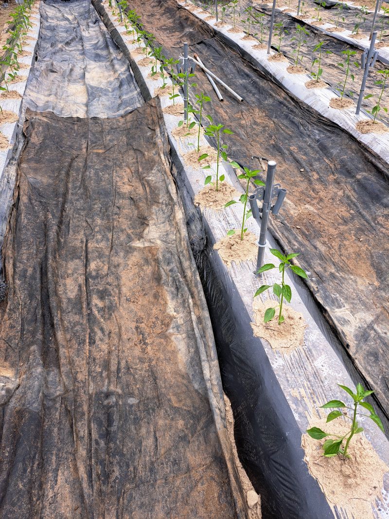 헛골랑에 부지포 씨우기작업ㆍ잡초방지용과 수분관리 여러무로 좋아요 고추밭