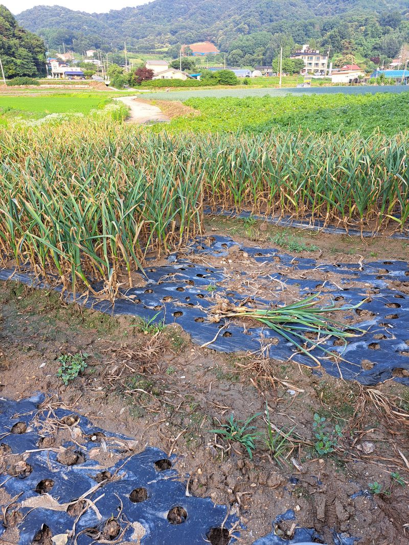 마늘 캐기작업 씨알이 잘잘해
