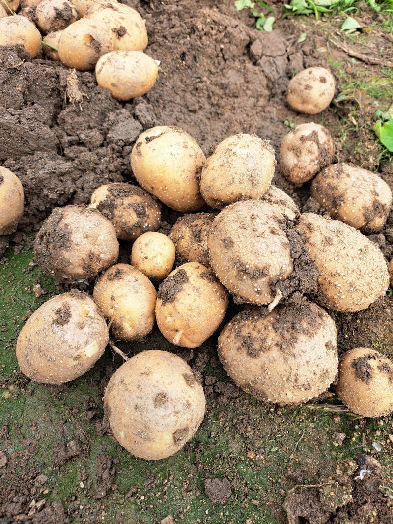 가을감자 수확했어요 크지는않코 비닐씨운것이 작게 달렸어요 노지로 심은것이 더 알이 크게 달리네요