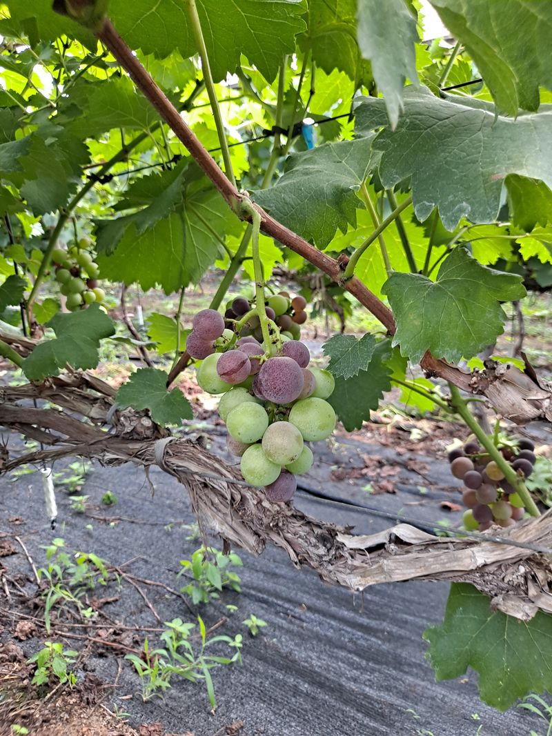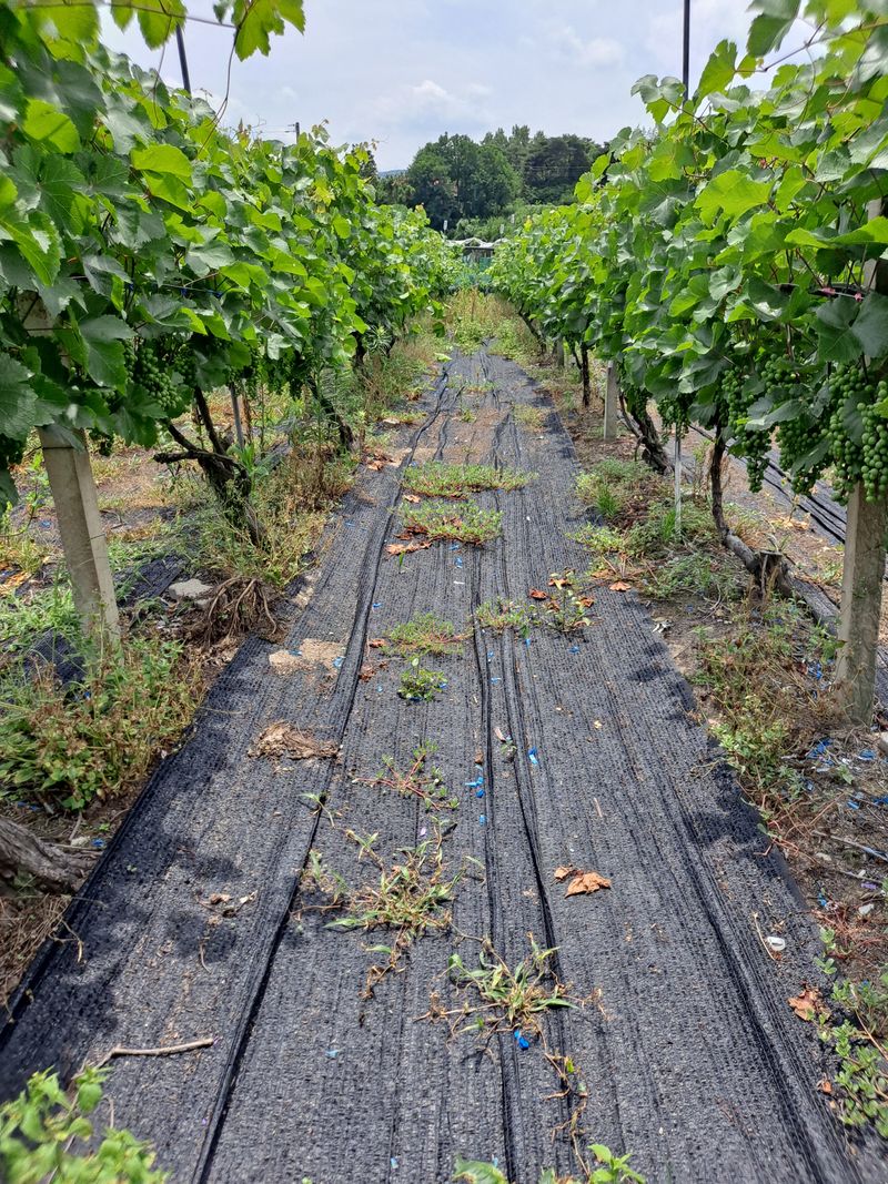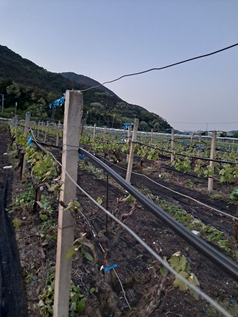 신초 정리 거봉밭, 머루,선샤인 관수 2시간.배수 잘 안되는 곳 3군데 있음 ,샤인1고랑줄머루 못밑 1고랑 오전6:20~8:20 7:10~9:30 관수 했는데 오전 12시~1시 사이 소나기 옴