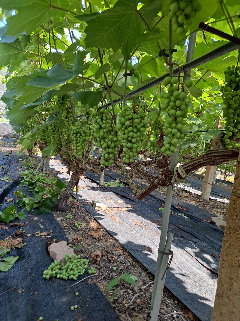 거봉 알 솎기 미처 봉지를 못 씌우니 너구리가 먼저 와 맛보네 새 쪼아 먹은 알 빼기 머루 신초정리 샤인 신초정리