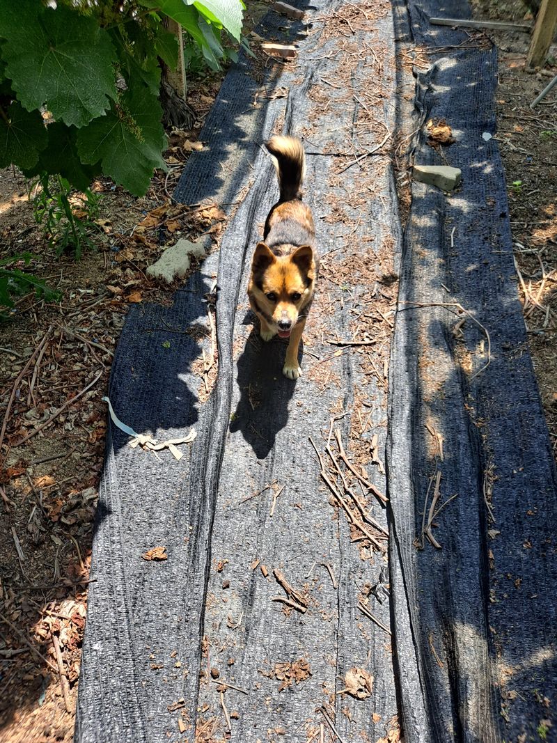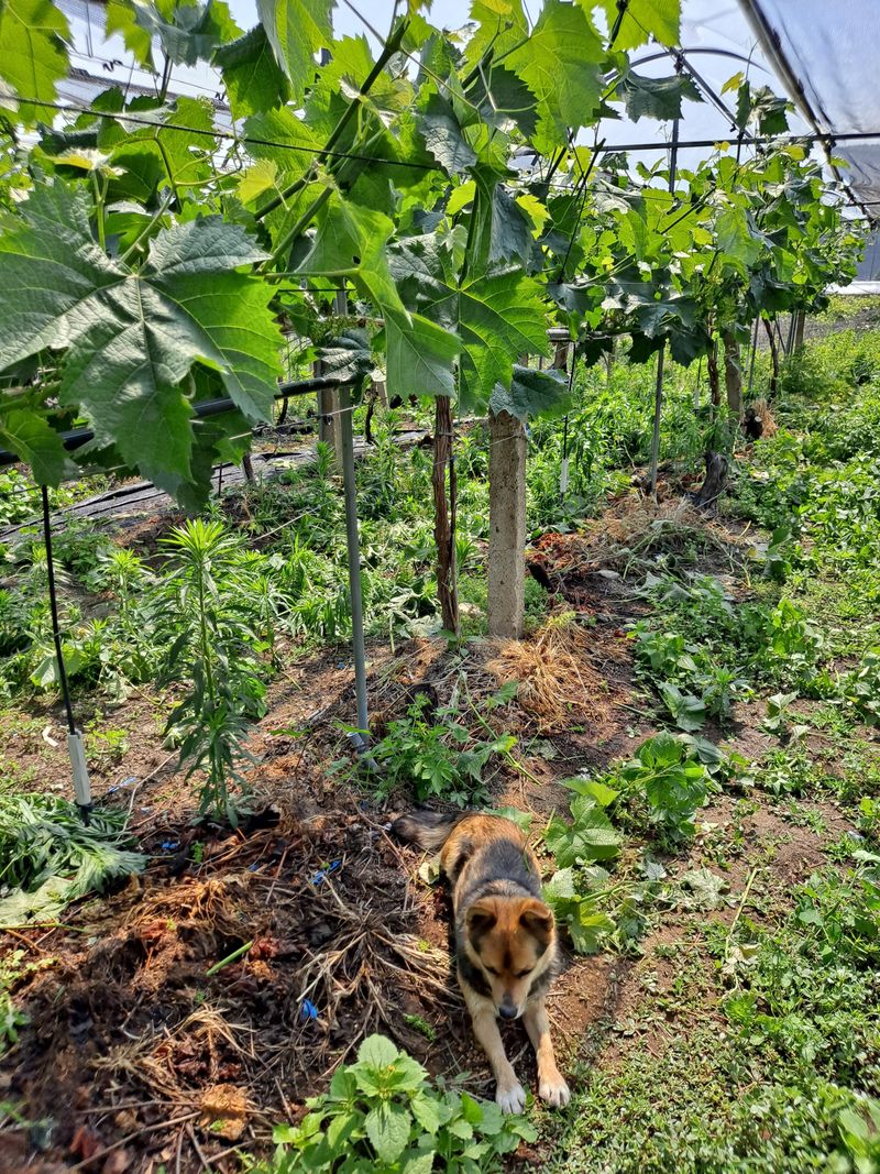 션샤인(씨있는 샤인머스켓)잔알빼기 가지유인 더우나 비가 오나 주인 따라 다니며 밭 지키는 뺑돌이가 기특하다
