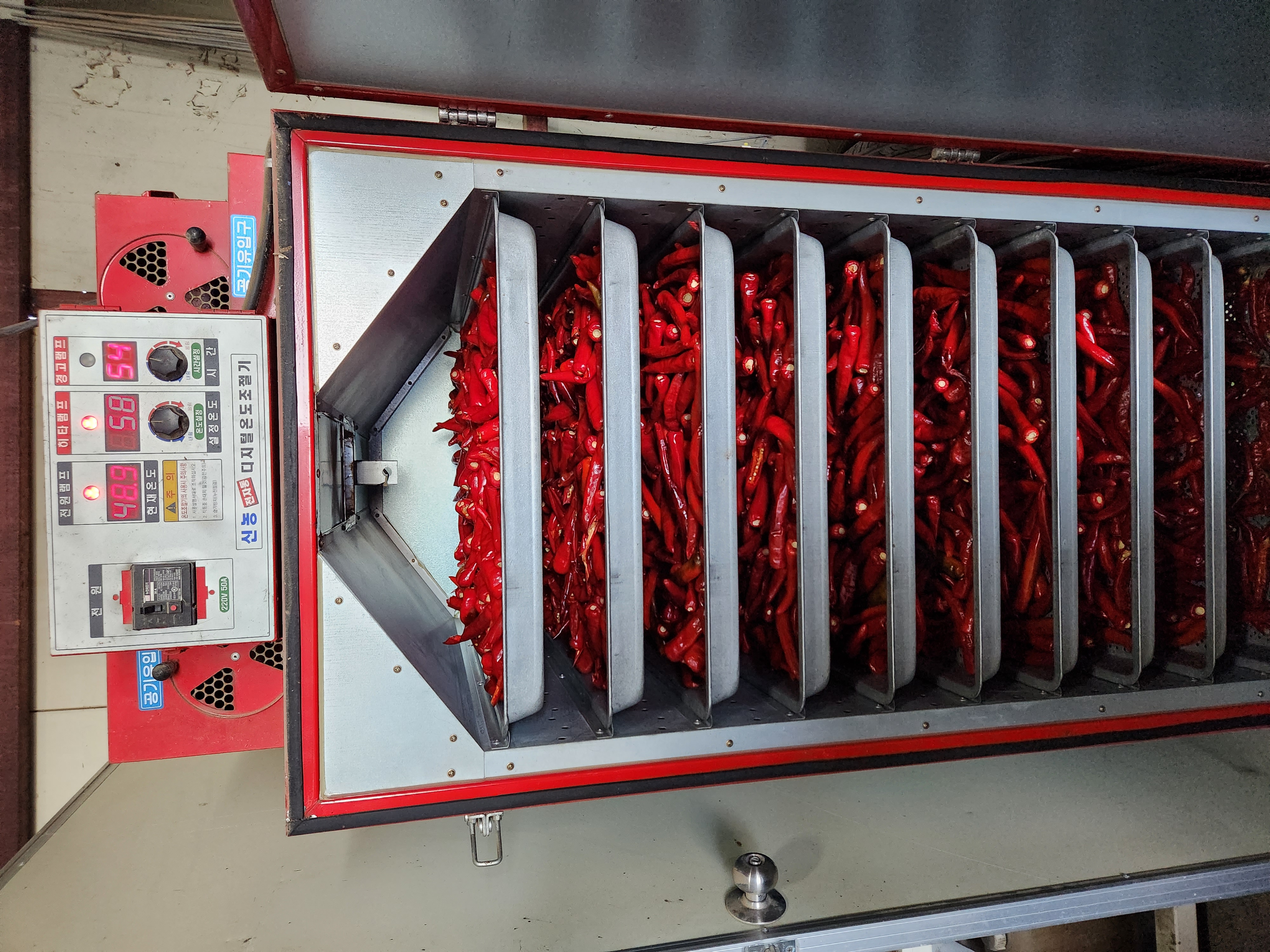 오늘은 고추 두물을 따서 세척후 건조기에 넣었네요
