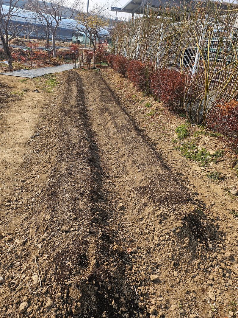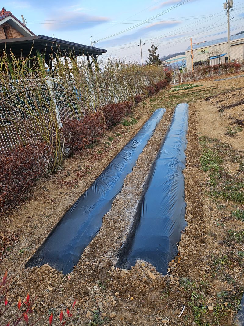 어제 앞 텃밭 경운하고 두둑 성형한 곳 멀칭완료하고 주변 정리 모든 텃밭 준비하고 때만 기다리고...