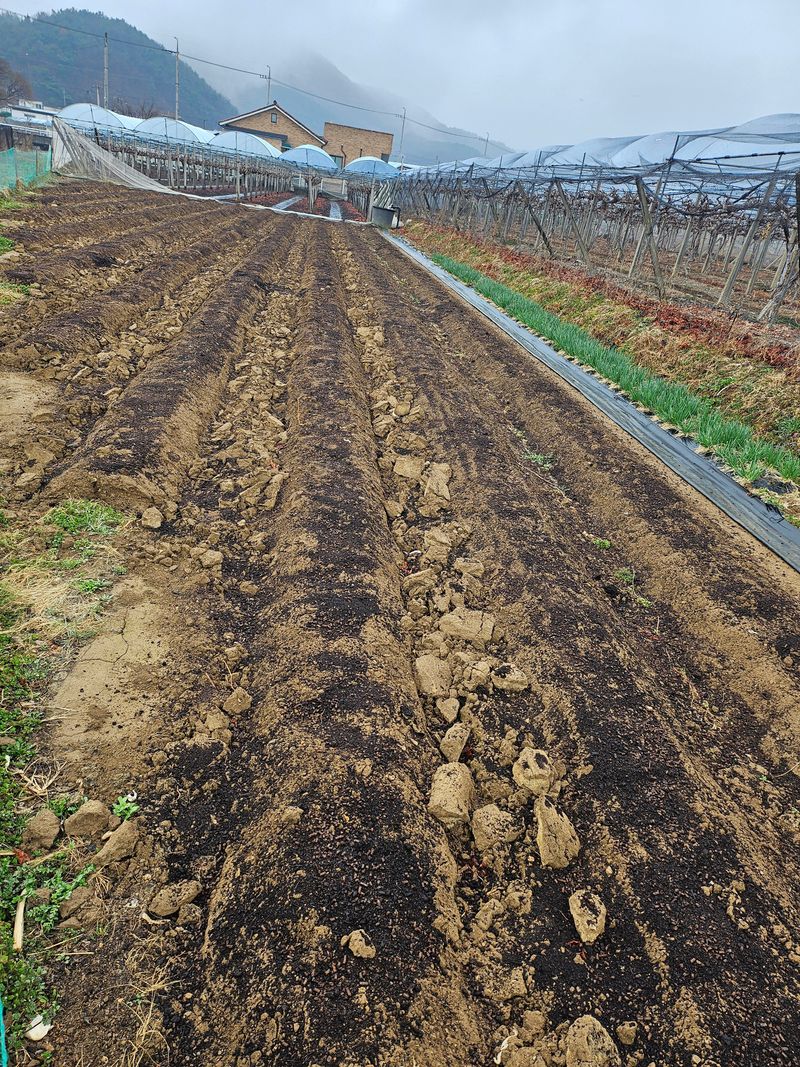 앞,뒤 고추밭 예정지 1차 10일전에 퇴비24포,유박8포 흩고 2차 복합 흩고 제초작업 함