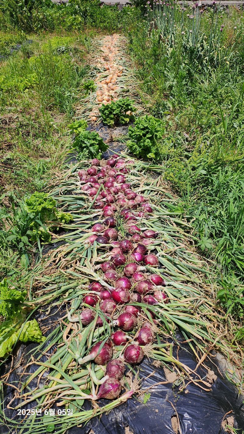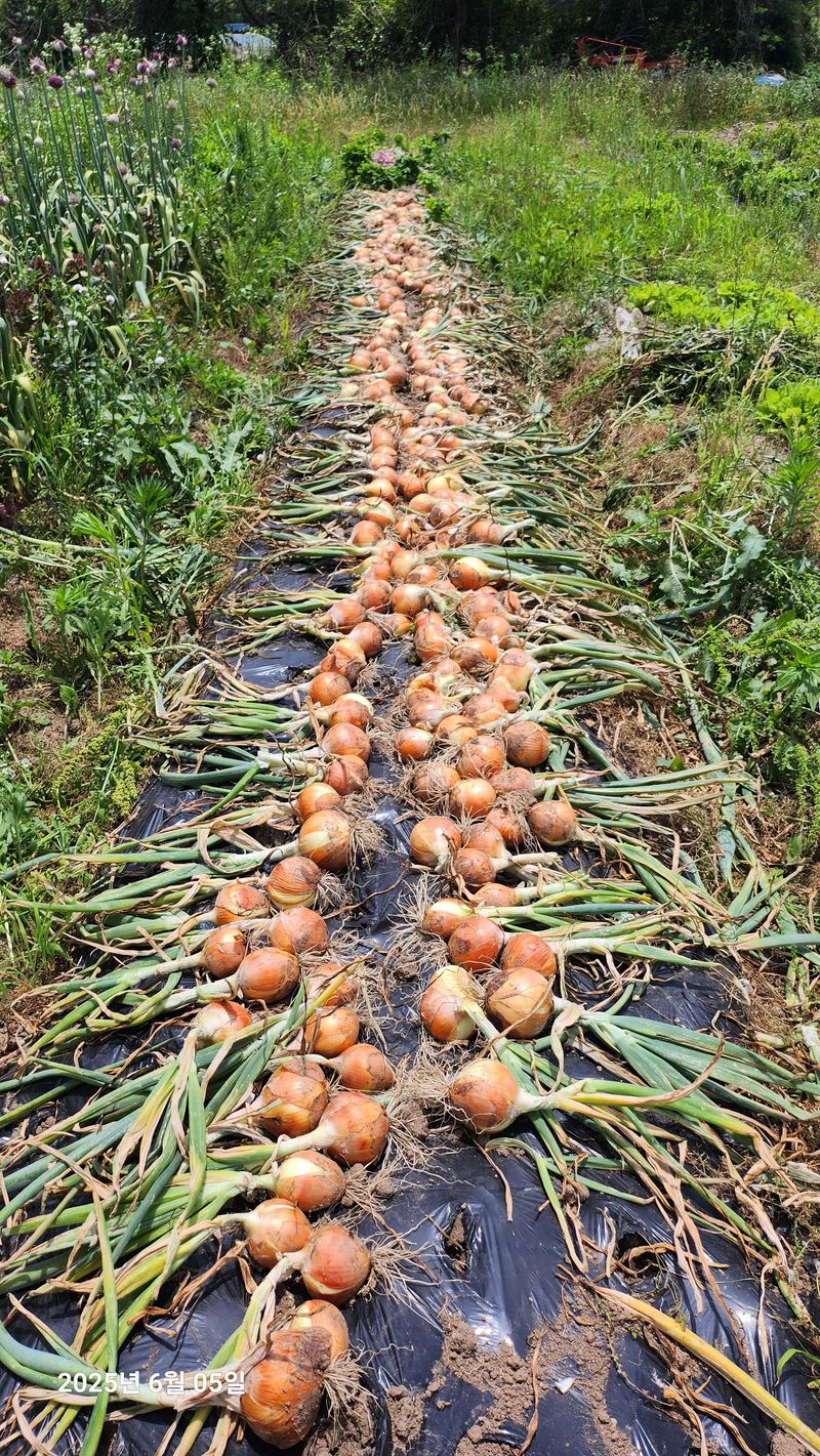 6월21일 하지날 감자수확 가족들한테 택배 보내기 위해 그늘에서 건조중