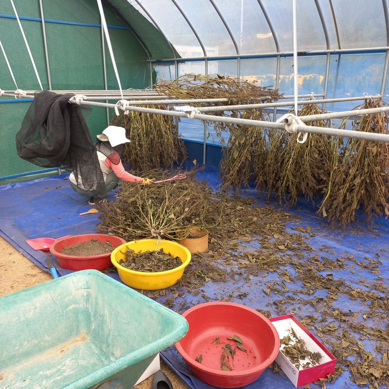 오늘은 들깨를 털었어요. 하우스에 파이프로 건조대를 만들고 바닦에 비닐과 망을 설치한다음 건조하고 들깨를 털어보니 잘라서 운반하기는 힘들었어도 허실이 없고 쉽게 털었어요~^^
