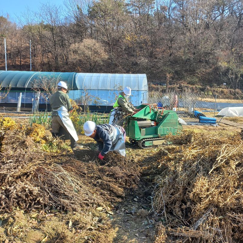 오늘은 수확 완료후 건조된 가지와 줄기를(참깨, 들깨, 서리태, 고구마, 국화 등) 파쇄작업을 했습니다