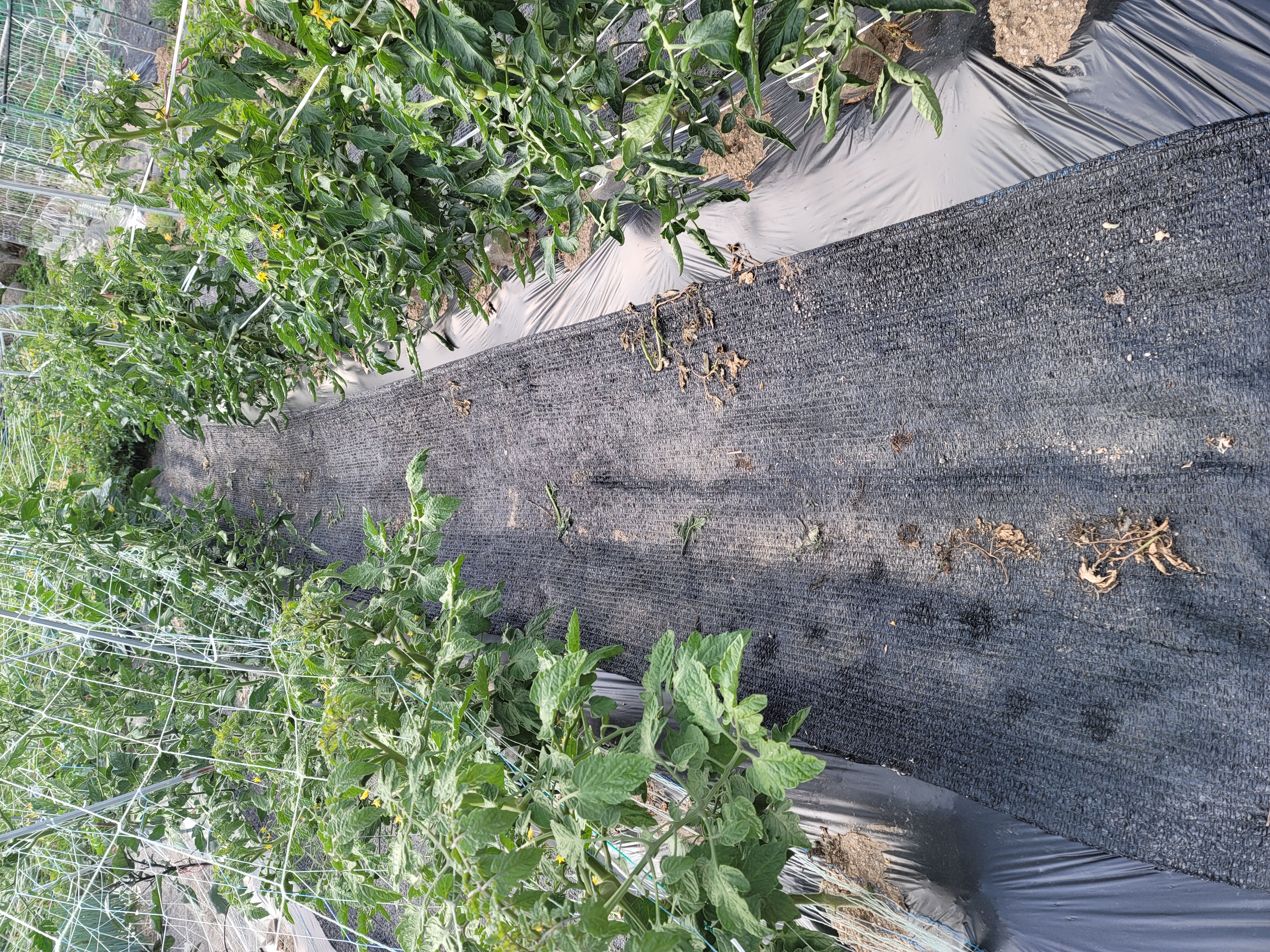 오후 4시경부터 비가 내리기 시작했어요.작물들 곁순제거와 유인 그리고 고랑에 풀제거 했어요.