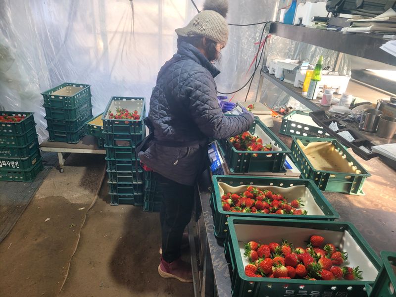 딸기 수확 1 2 4번동 인부1명 꽃작업