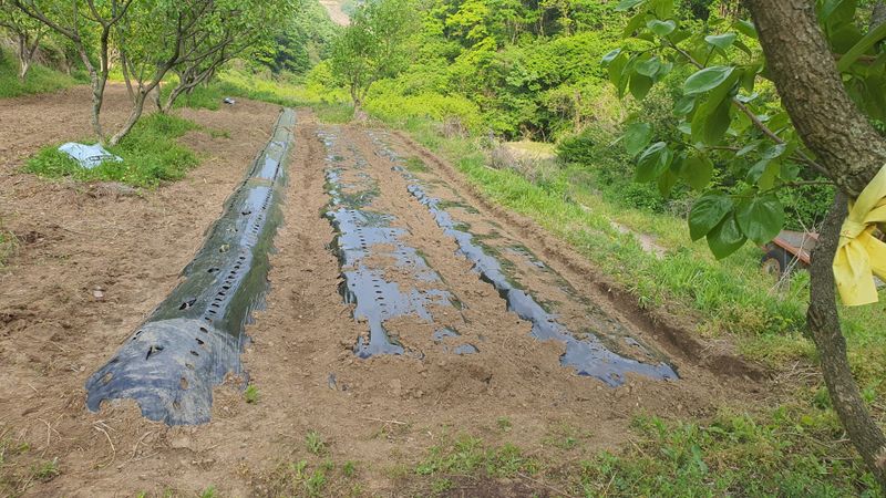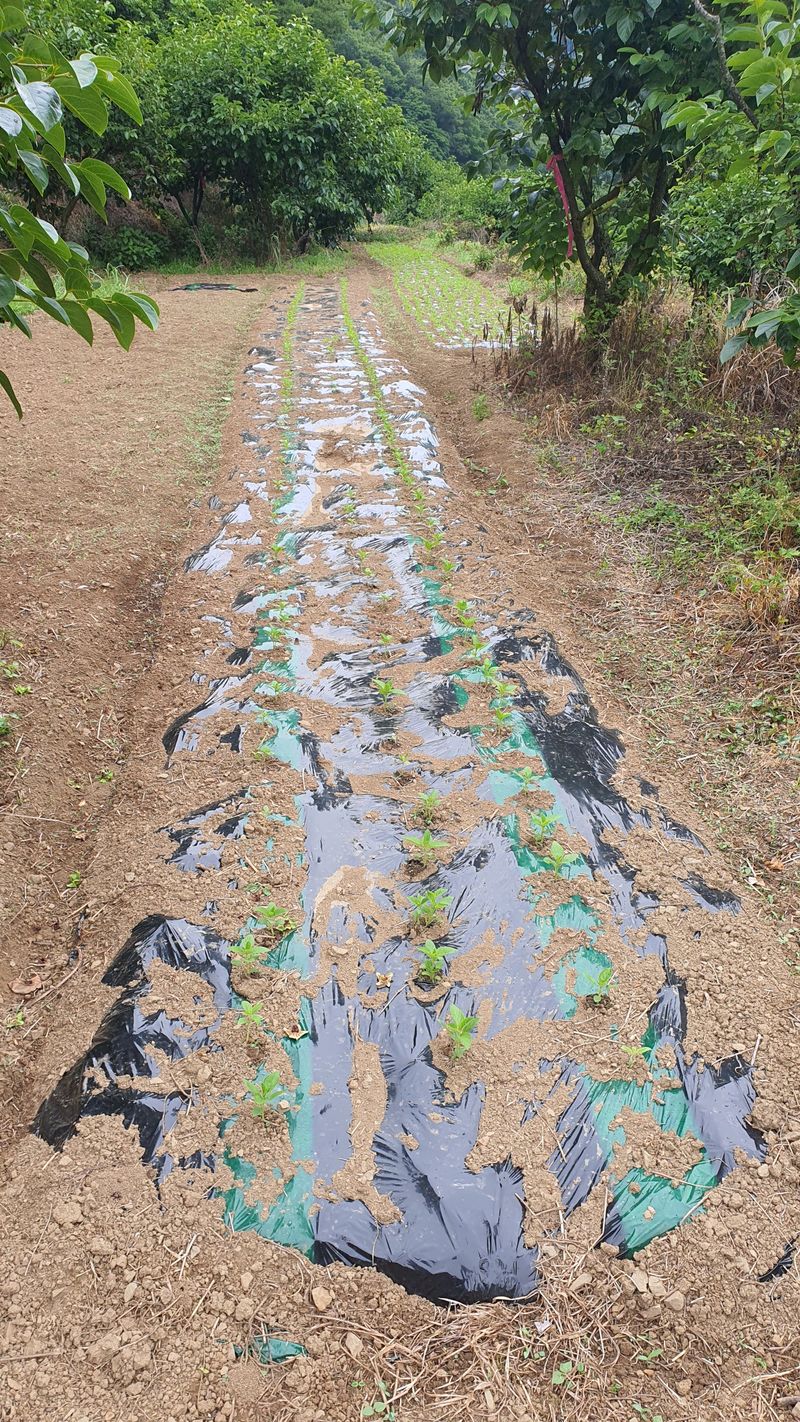 두둑에 비닐 쒸우기...
