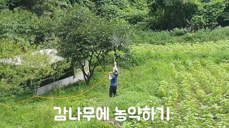 감나무 농약 하였습니다. 팡파레와 아미스타탑을 썩어서 했어요.