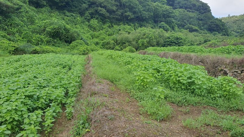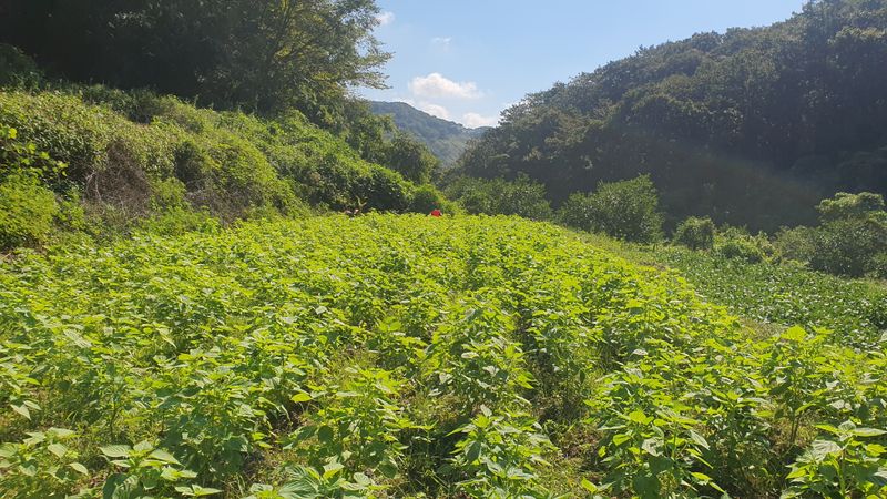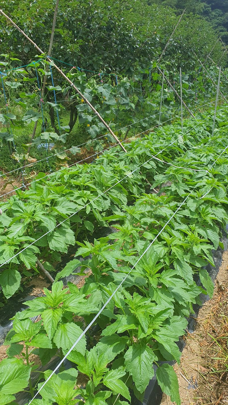 들깨 잎 순지르기와 제초를 하였습니다.