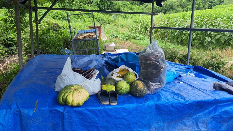 가지와 고추 오이 수확
