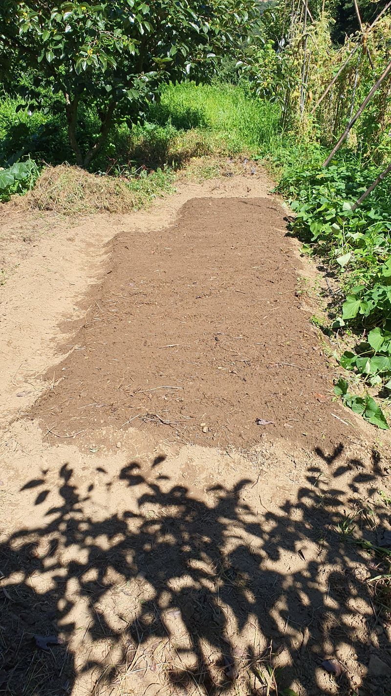 들깨 풀뽑고 복합비료 추비 하고, 시금치 씨뿌림 했습니다.