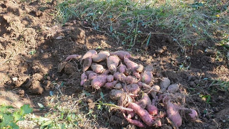 오이넝쿨 겉고 고구마 캐기 했습니다.