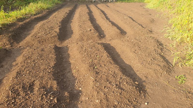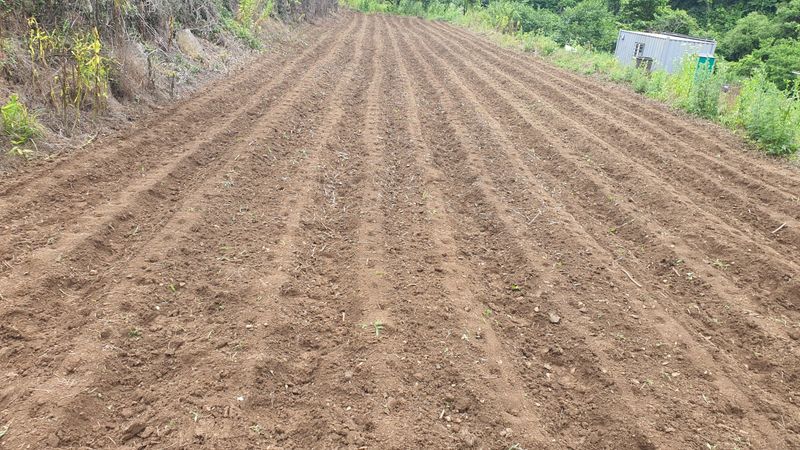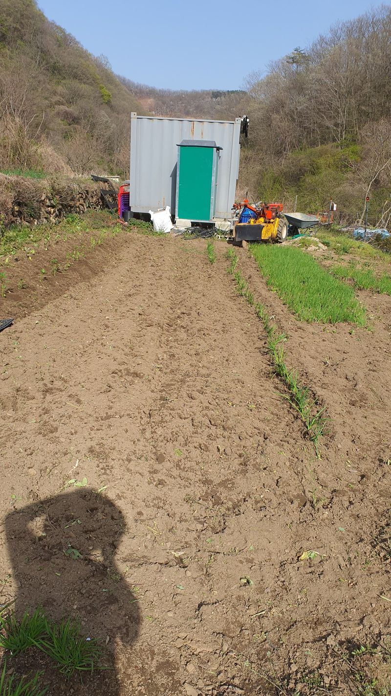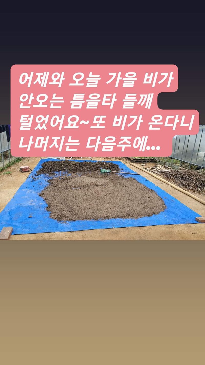 들깨 치우고 70평에 퇴비8포 ,칼슘 유황비료 1포 뿌리고 경운작업.
