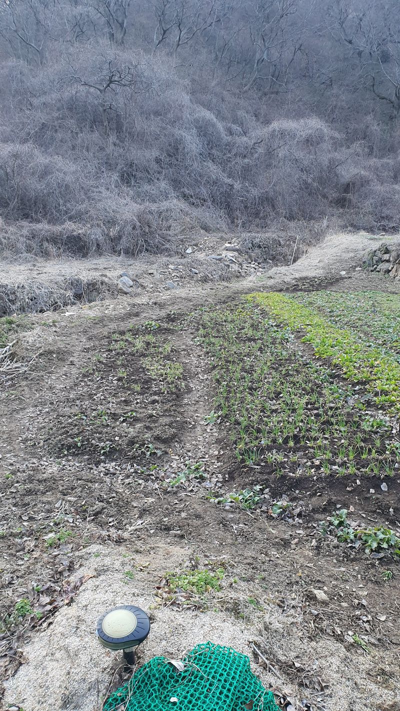 쪽파,부추,시금, 채소밭 풀뽑고 퇴비주기