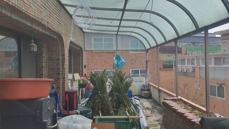 참깨 수확하여 서울 집에 가져와 마당과 테라스에 말리는중 입니다. 땀흘린 보람이 있습니다.