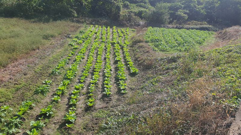 배추,풀뽑고 추비 하였습니다.