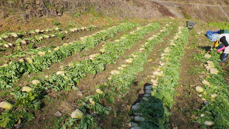 무 수확 하였습니다 .