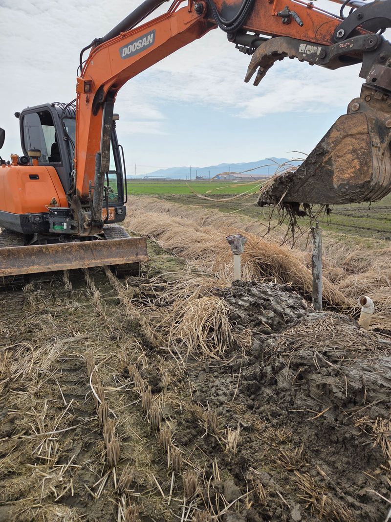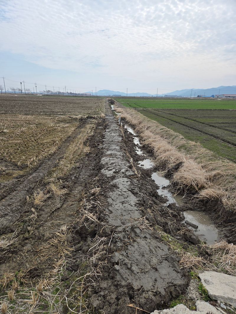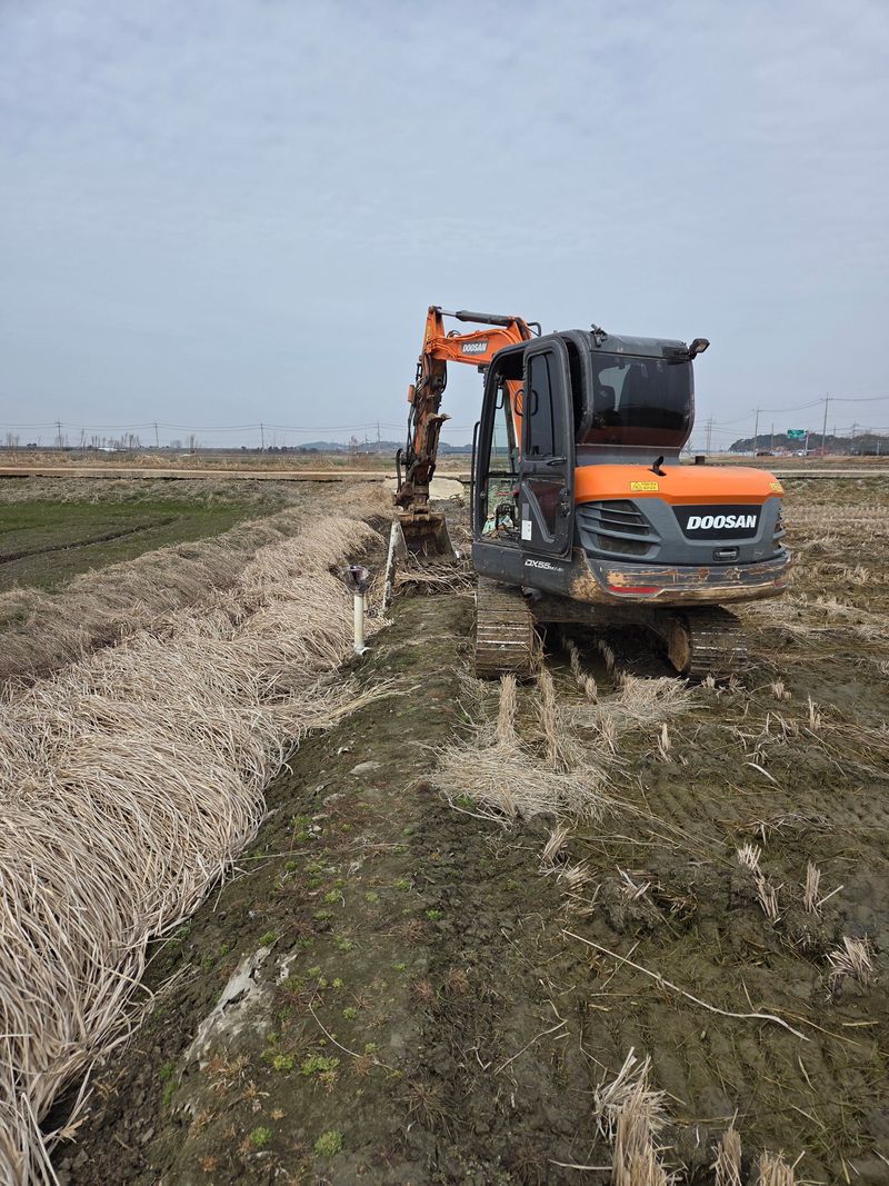 논두렁이 빗물에 낮아져 굴삭기로 논두렁 흙 높이 쌓았음