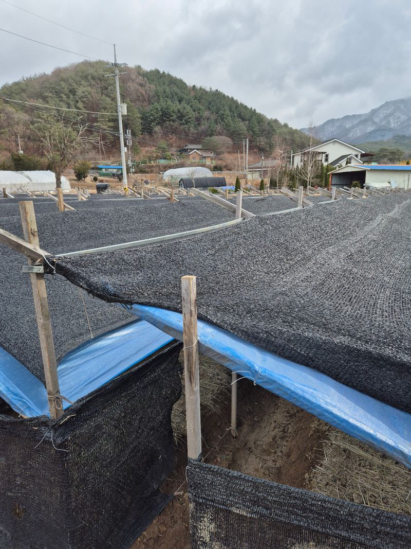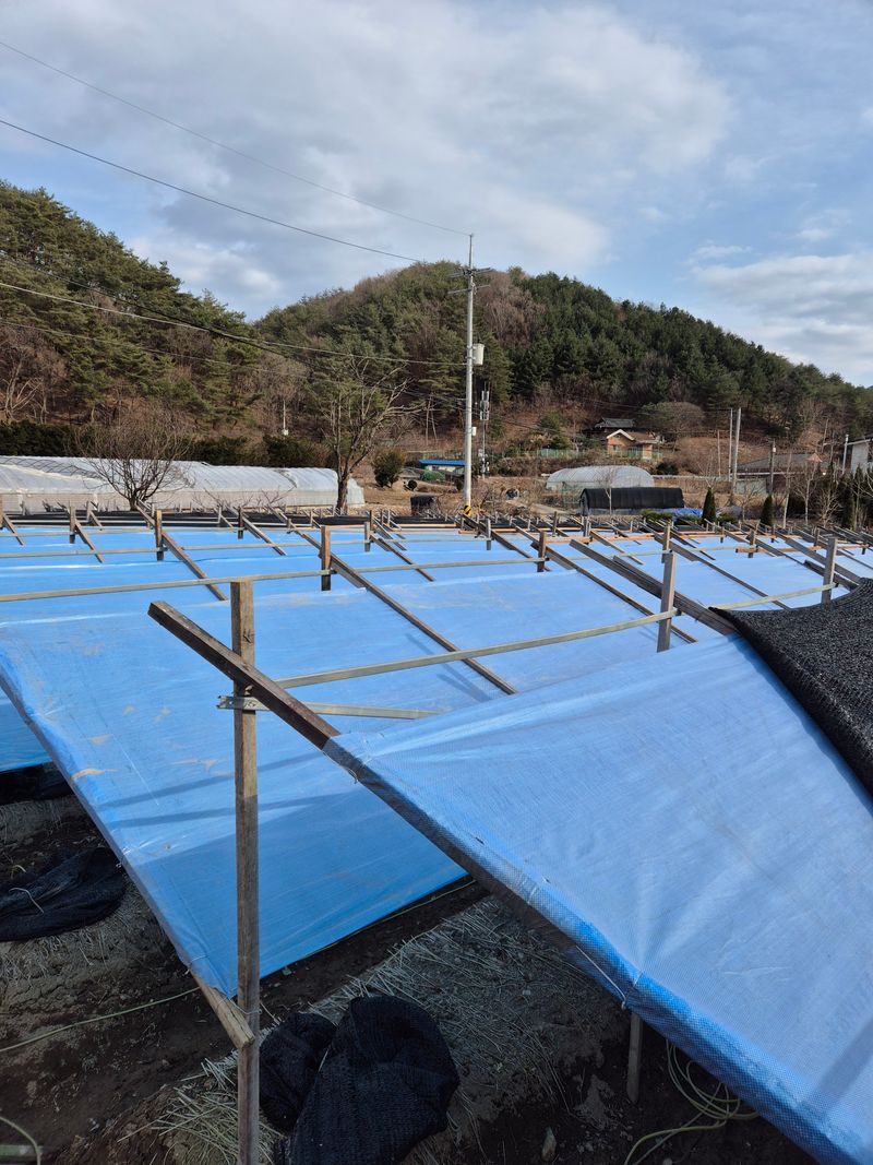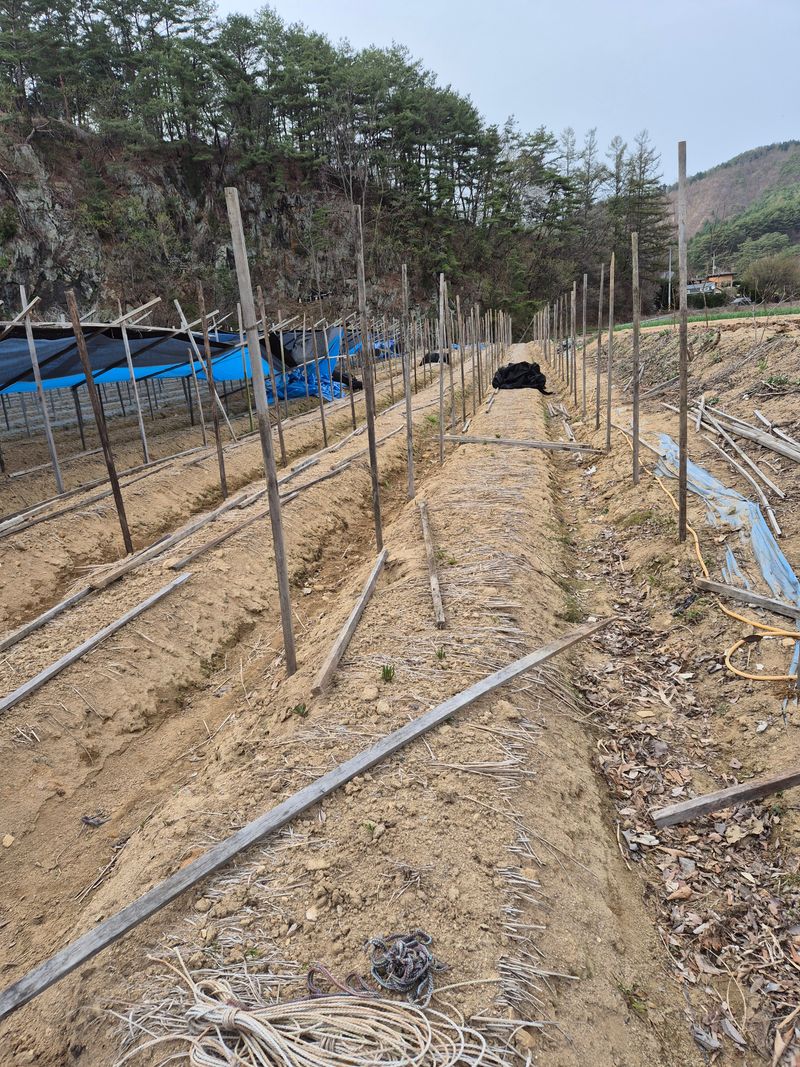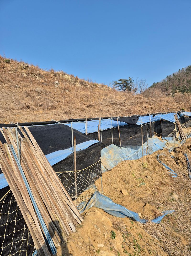 *해가림시설 설치 자재놓기및 지주목박기 ㅡ용역2명.자가인력3명