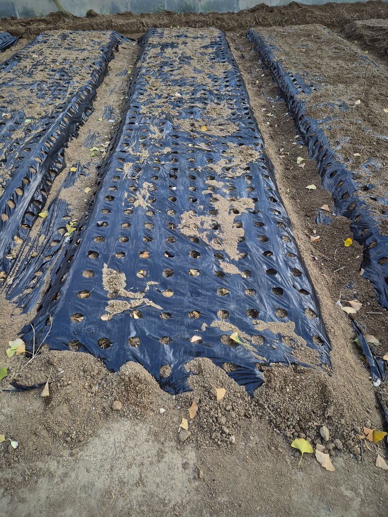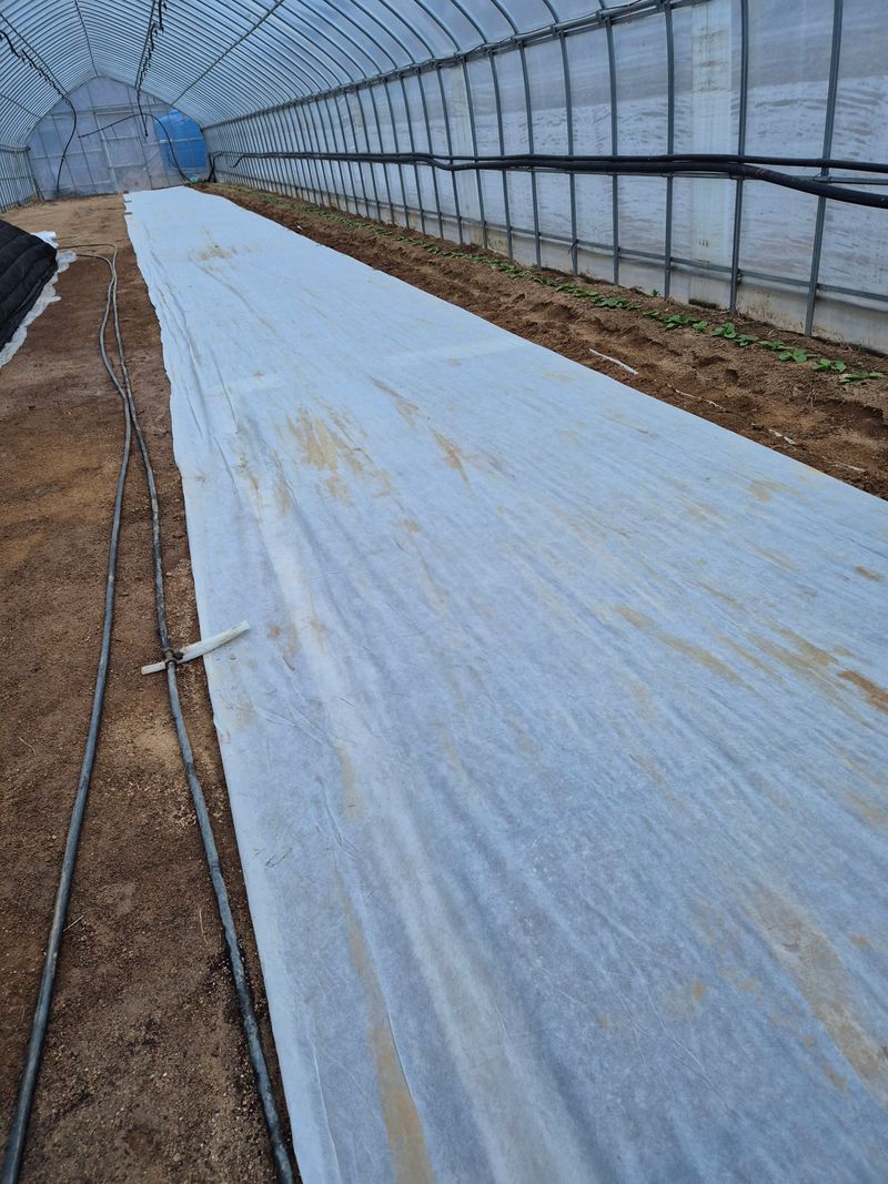 감자(수미)싹틔우기 비닐하우스에 차광지를 깔고 감자놓고 다시차광지로 덮음