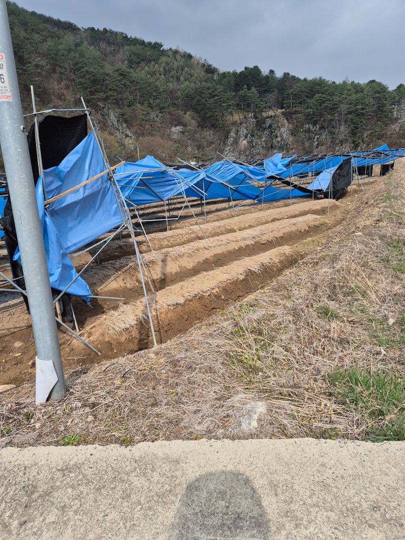 안말 피해복구 완료 강풍피해(철재해가림시설포지) 인삼재해보험 피해조사 실시