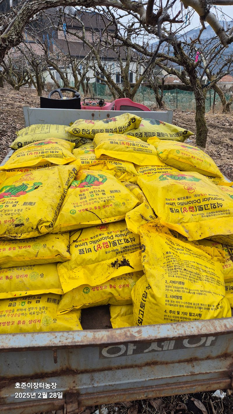 연수리 455-2,4,6 배과수원 윗밭 석화고토 17포 시비 아래밭 폐화석 14포시비 연수리 475 사과밭 규산 17포 절반만 33(사과 체리밭 전체) 연수리 체리밭 석화고토 5포 폐화석 9포