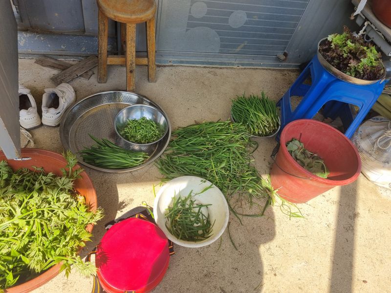 머위 쪽파 돌나물 상추 참두릎 엄나무순 수확