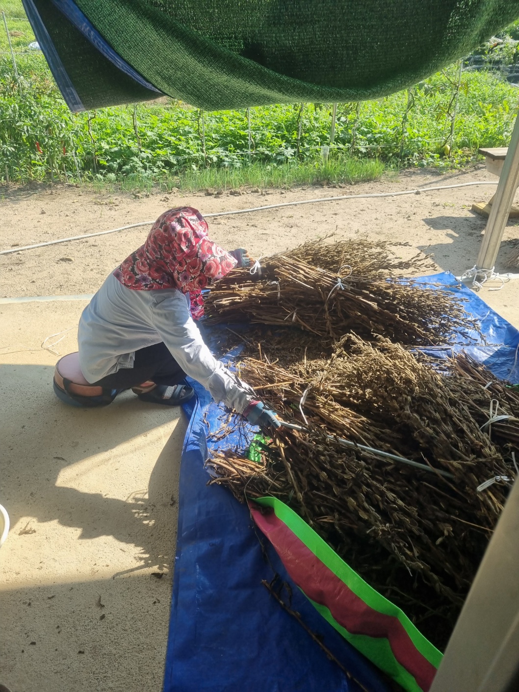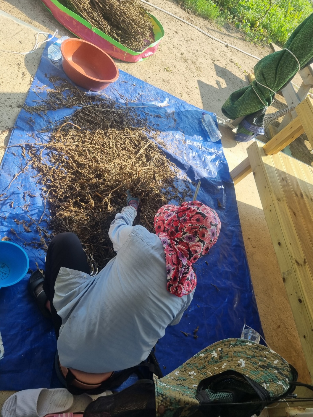 상추파종 참깨밭부직포제거 콩밭풀뽑기세우기 노각수확 참외수확