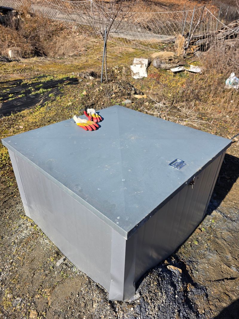 표고버섯 수확 하고 물주기, 비타민나무 가지치기 부직포 걷어내기. 동절기 물호스 분무기 물빼주기.