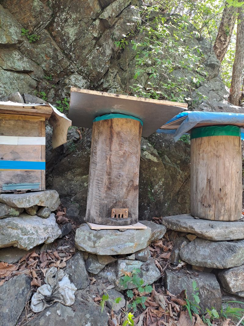 올해도역시토종산벌받으러산에다벌통설치를많이해놓았습니다 벌써몇통받았답니다