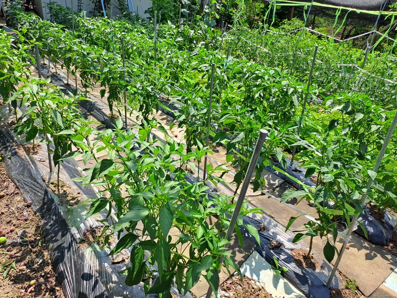 꽈리고추따기. 아삭이고추따기. 가지따기. 오이따기. 상추.케일.채취해서 삼겹살싸먹을겁니다.