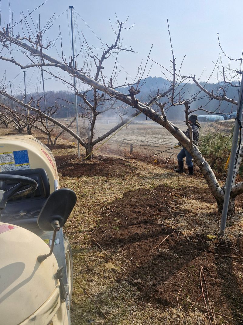 ☆2026년3월10일 복숭아 밭에 나무 목대에 살충제 침