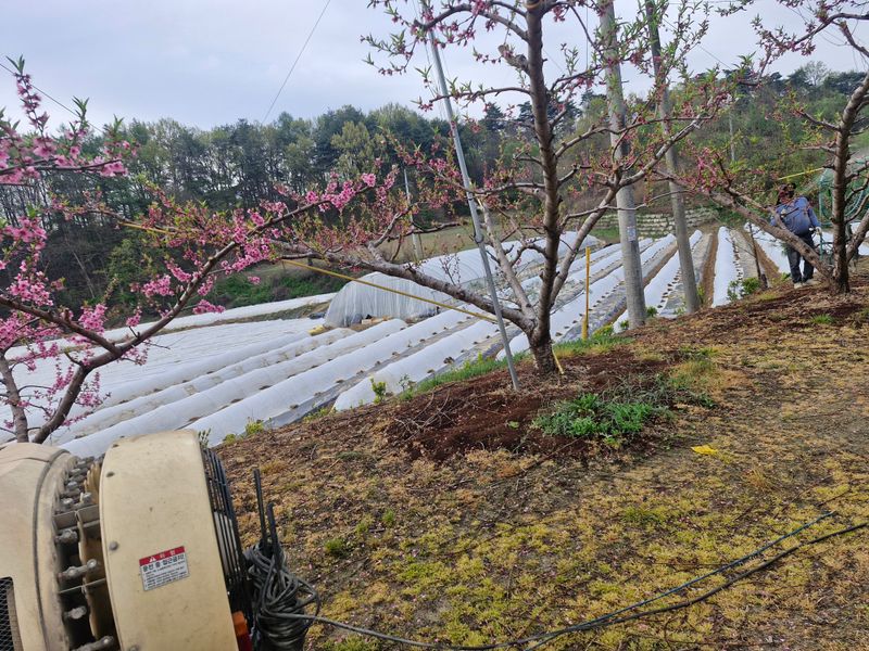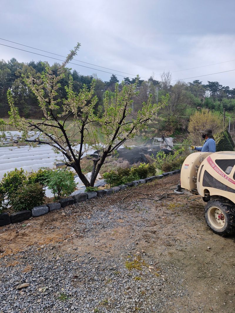 ♤2025년 복숭아 밭에. 1차 방제함.