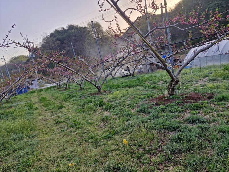 ♤2025년 5월6일 복숭아 🍑 밭에 플깍기 작업 하는날 저희 백운 농원은 매년 복숭아 밭에 제초제를 치지 않기 때문에 여러 차례 풀을 일일이 깍아 가며서 농사를 짖고 있지요