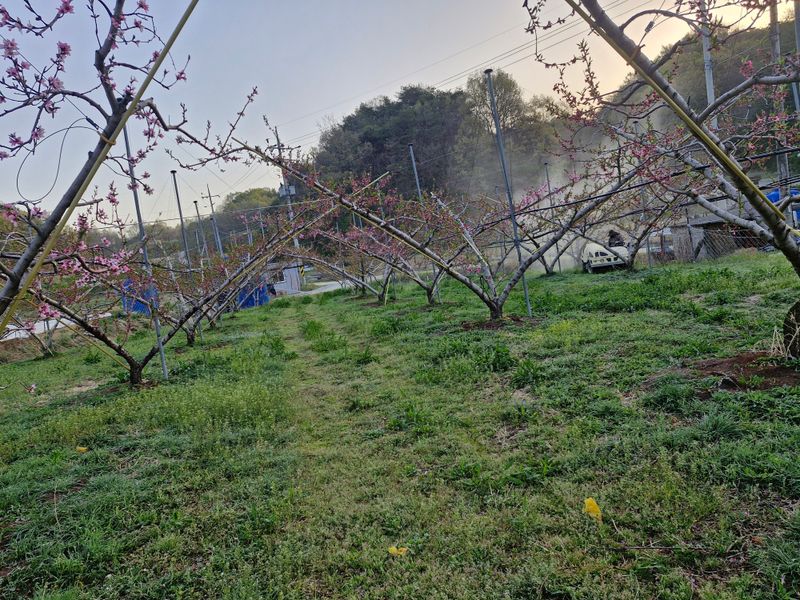♤2026년3월21일 복숭아 밭에 1차방제 유황 ㆍ살충제 방제 함