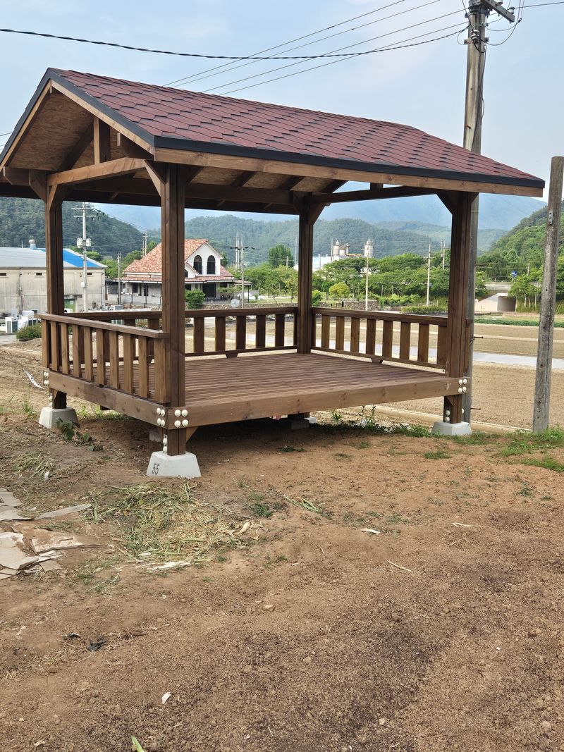 하우스 옆 휴식 공간 정자 완성
