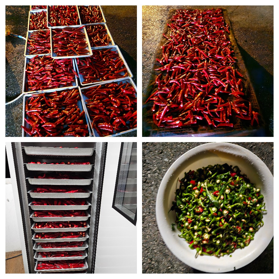 23년7월30일 첫 수확 30일 첫 수확 31일 퇴근후 🌶~~~샤워하기 🌶~~다듬기 🌶~~건조기 정리하기 🌶~12채반 가득 가득 채워 건조와 🌶~~태양으로 말리기 비교 해볼거임