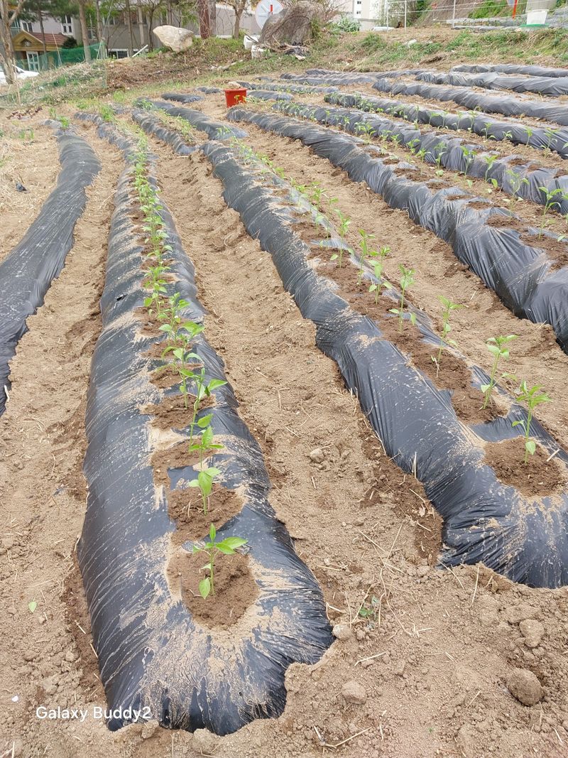 울타리전부막고.기둥세우고.파푸리카.고추.대추토마토.왕토마토.가지.오리.심기.했어요.