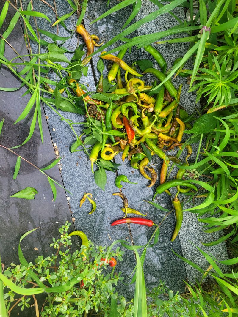 장마철이라 비 잠깐 개인날 소독해주고 병걸린 고추 따내어 주었다. 화요일부터 다시 비가 온다니 고추가 걱정되긴 하다. 힘내라 고추야