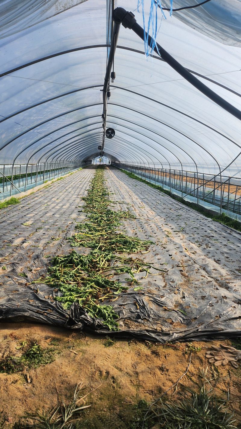 쫑상추 작업 하고 밭청소하기 멀칭비닐 벗기기 풀약치기