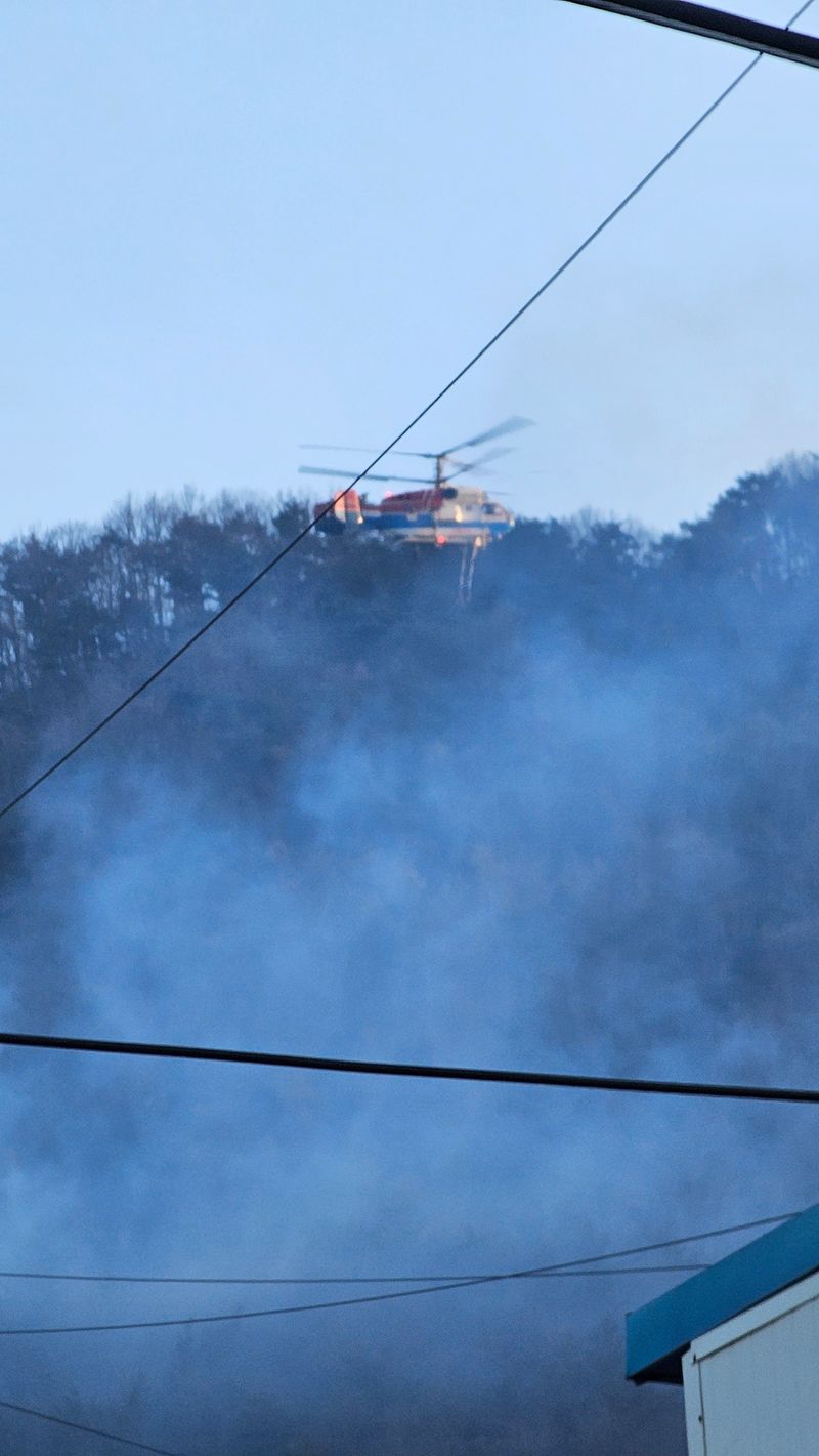 오늘02시에우리마을뒤산에산불이크게나서아무일도못하고집에서대기상태 절대로농산물부자제소각하면않됐니다.
