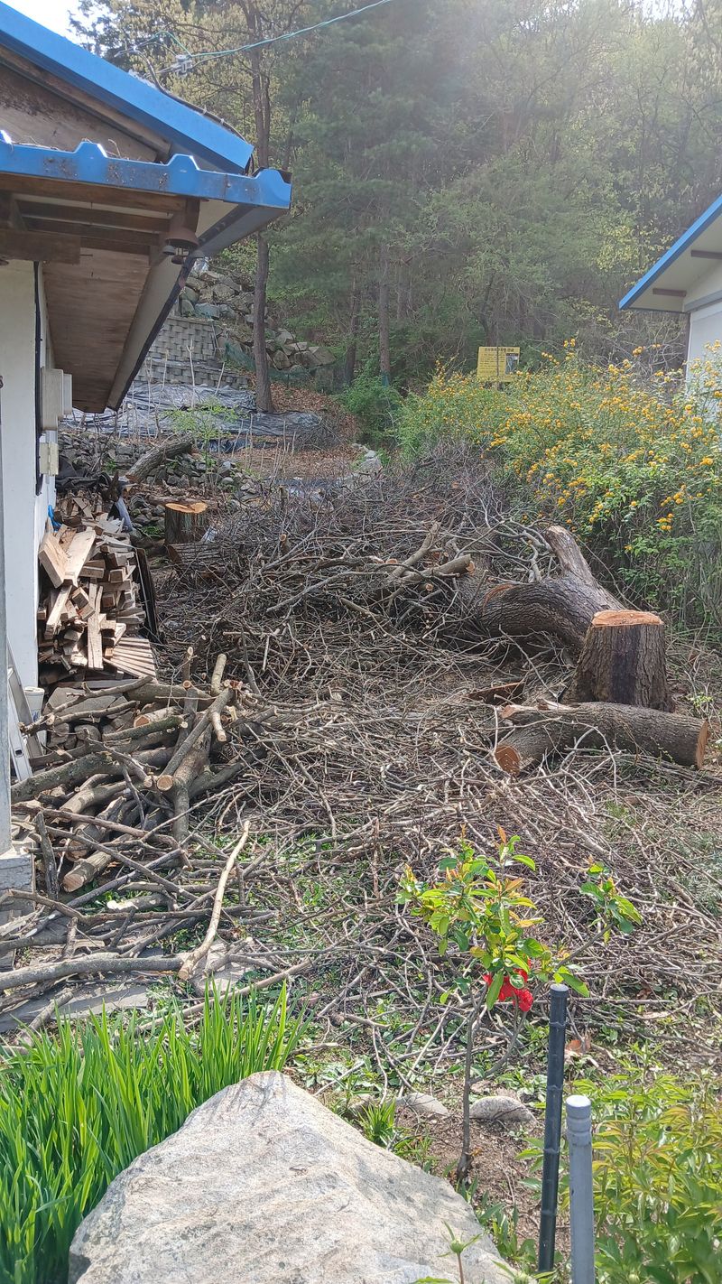 밭주변 나무정리 철죽,쥐똥나무,황매화 등등.