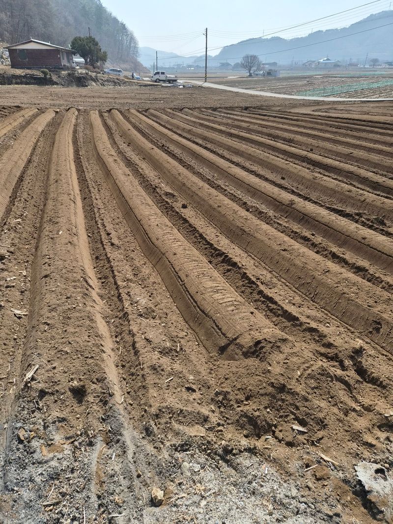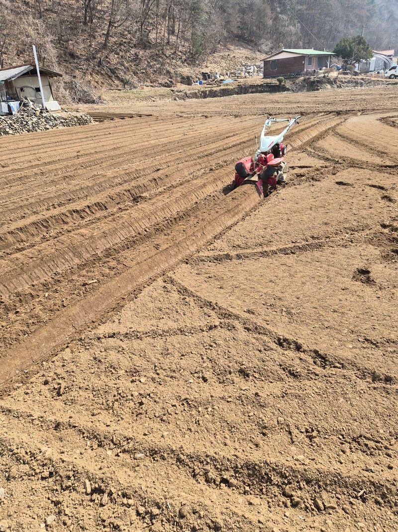 밭(고추 들깨 무 배추 등)1,000평 로타리치고 유박유기질비료 살포