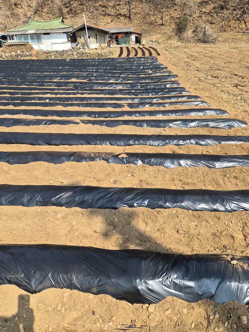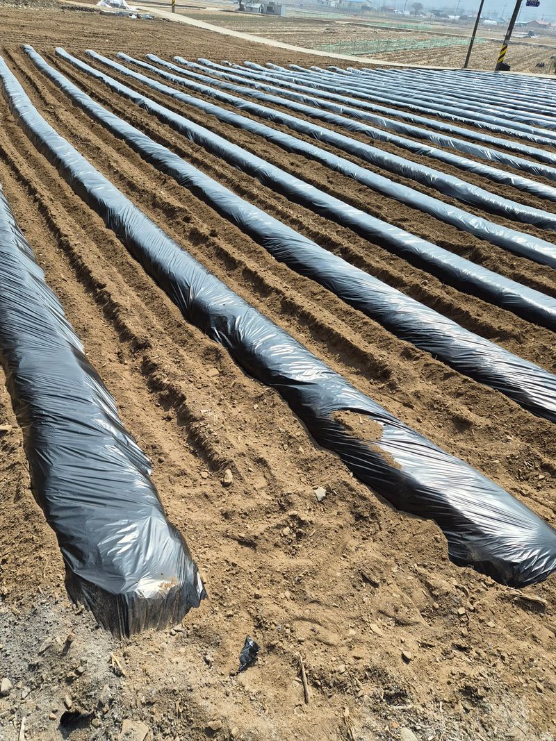 감자밭 비닐피복 작업