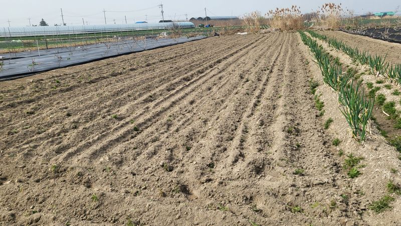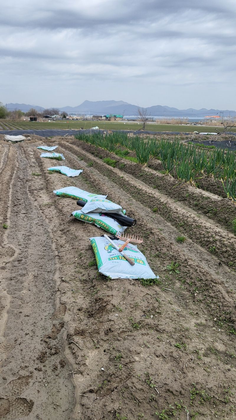 감자밭 거름 뿌리고 마늘 양파 제초
